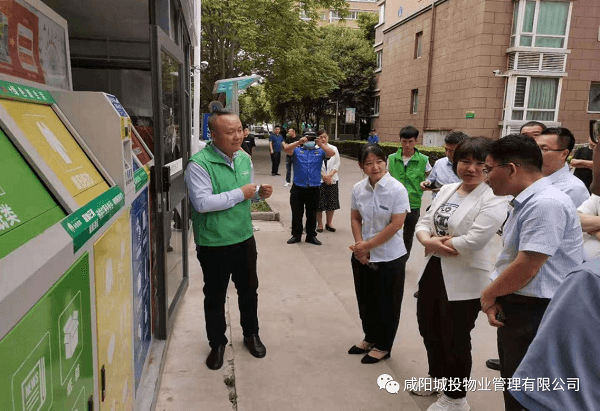調研團一行人現(xiàn)場聽取了城投物業(yè)愿景園小區(qū)負責人的介紹,觀看垃圾分類智能收集演示、查看垃圾分類資料臺賬、垃圾分類知識宣傳欄、了解垃圾分類積分兌換的制度、垃圾收集量、垃圾投放處理及收運的時間和流程。