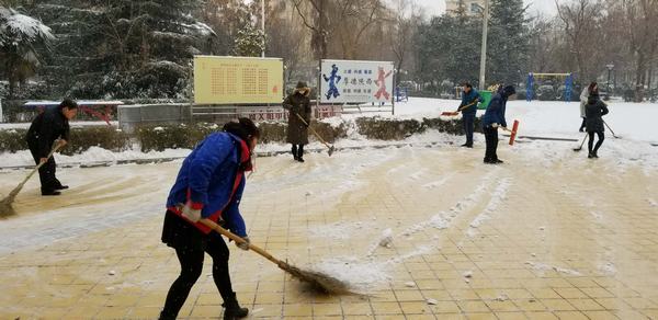 由于氣溫較低,主干道路的雪被壓得很瓷實,清掃工作十分困難。天氣雖然寒冷,但是大家熱情高漲,即使手凍的通紅,也擋不住大家的干勁。都爭先恐后,團結協(xié)作、井然有序,掃的掃、鏟的鏟,干勁十足,一心想著將路面的積雪盡快清除,經過一天的奮戰(zhàn),基本將包抓路段、主干道積雪清掃干凈,確保了廣大居民、業(yè)主的出行安全。