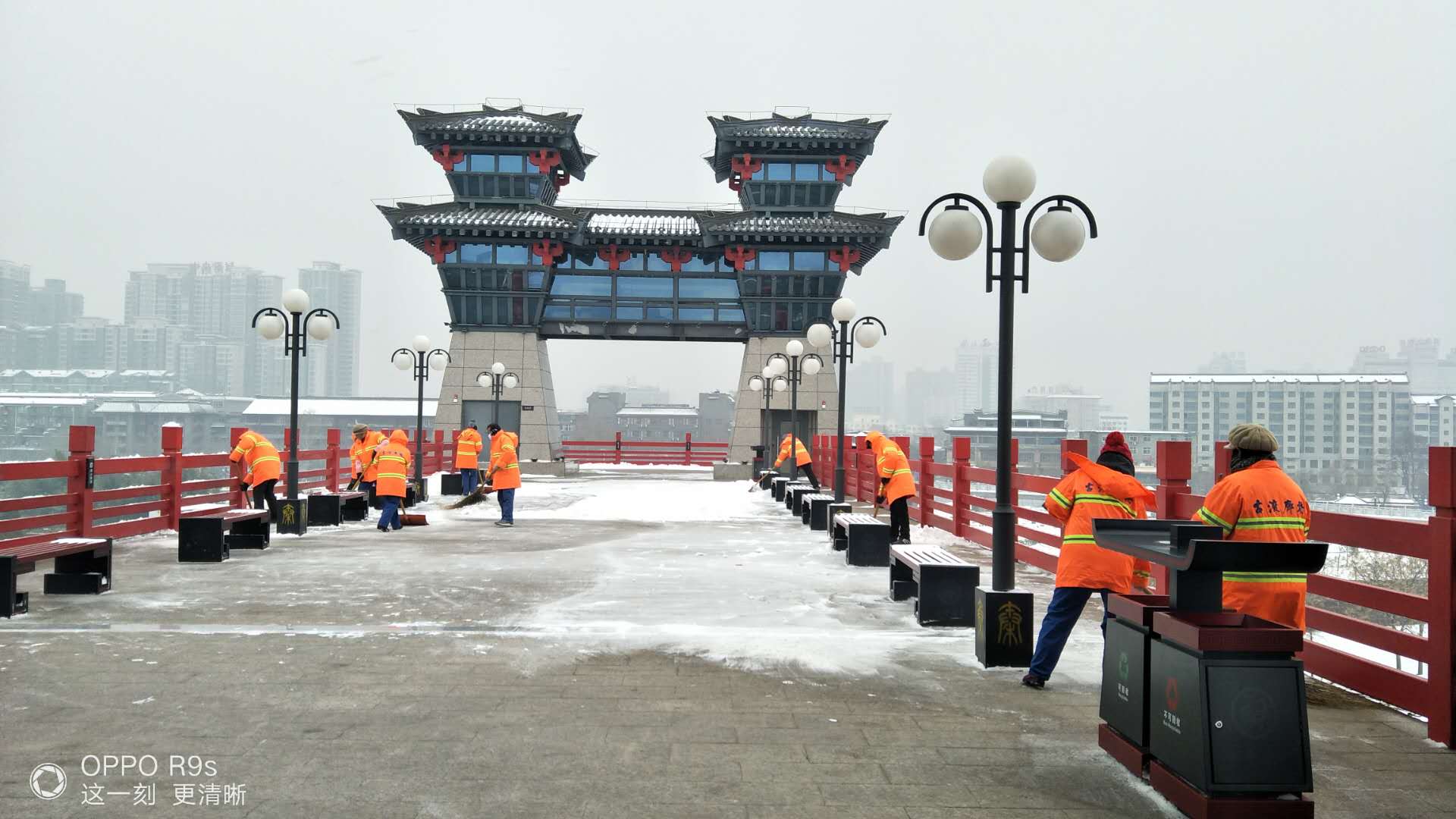 1月25日上午,為了確保道路暢通和業(yè)主的出行安全,城投物業(yè)全體員工冒著凜冽的寒風,在總經理趙明海的帶領下,兵分三路,對古渡廊橋、小區(qū)主干道、包抓路段積雪進行清除。